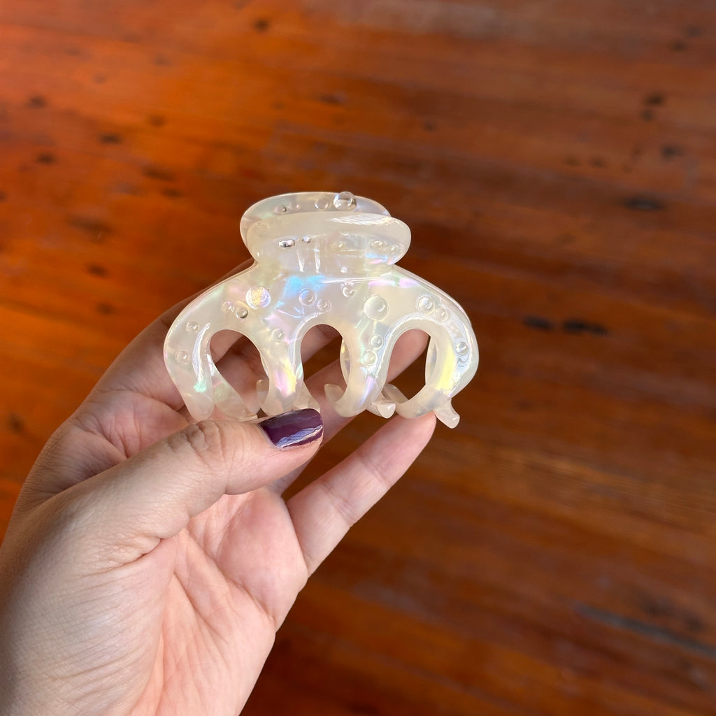Meet your new hair-holding bestie! This medium-sized claw features interlocking teeth designed to grip thin to medium hair with confidence, no matter your texture. Crafted from premium acetate—a durable, plant-based bio-plastic—it's as kind to the planet as it is to your strands. All metal hardware is lead and nickel-free for peace of mind. Each piece is handmade, so expect charming variations in pattern, color, and form that make yours uniquely yours.