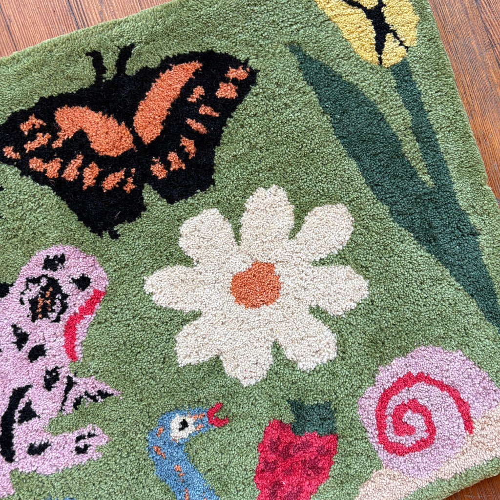 Meet the Little Garden Rug—a hand-tufted treasure with an original design by Lorien Stern. This 31 x 19 inch rug blends 80% wool and 20% cotton into a plush 3/4-inch thick masterpiece. Each piece is uniquely hand-dyed with charming color variations. Perfect for entryways and cozy spaces, just ensure door clearance and use rug tape to keep it in place. Colors may vary slightly on screen.